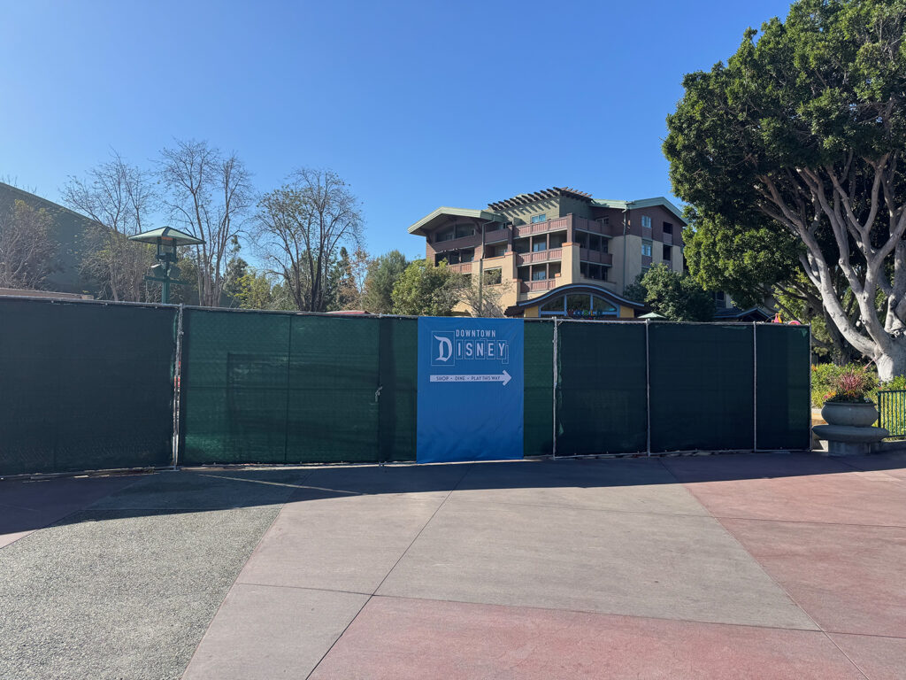 …Visitors should expect detours and delays near the construction site of the new Porto’s Bakery in Downtown Disney, especially in the load and unload areas for the Mickey and Friends tram and around the World of Disney store. These photos are from our last two visits, but the construction walls often move overnight.