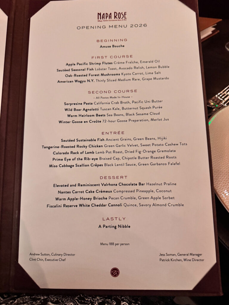 The Napa Rose Restaurant at Disney’s Grand Californian Hotel reopened with limited service earlier this month. The restaurant was closed for nearly a year for an extensive renovation which of the dining room, lounge, private dining area and chef’s counter. We booked reservations for opening weekend, and share photos of the expanded dining room below. We are visiting the restaurant again this week, and will have a more comprehensive food review, as well as photos of the new lounge area, shortly.