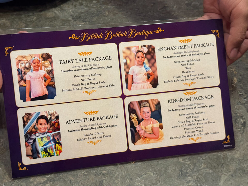 There are now four “sample” packages listed online, instead of the eight packages previously offered. We weren’t sure if Disney had completely eliminated those offerings, or if they were just no longer advertised on the website.