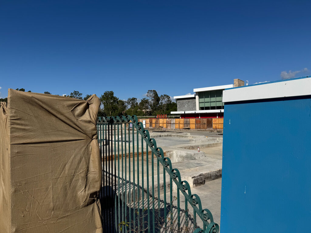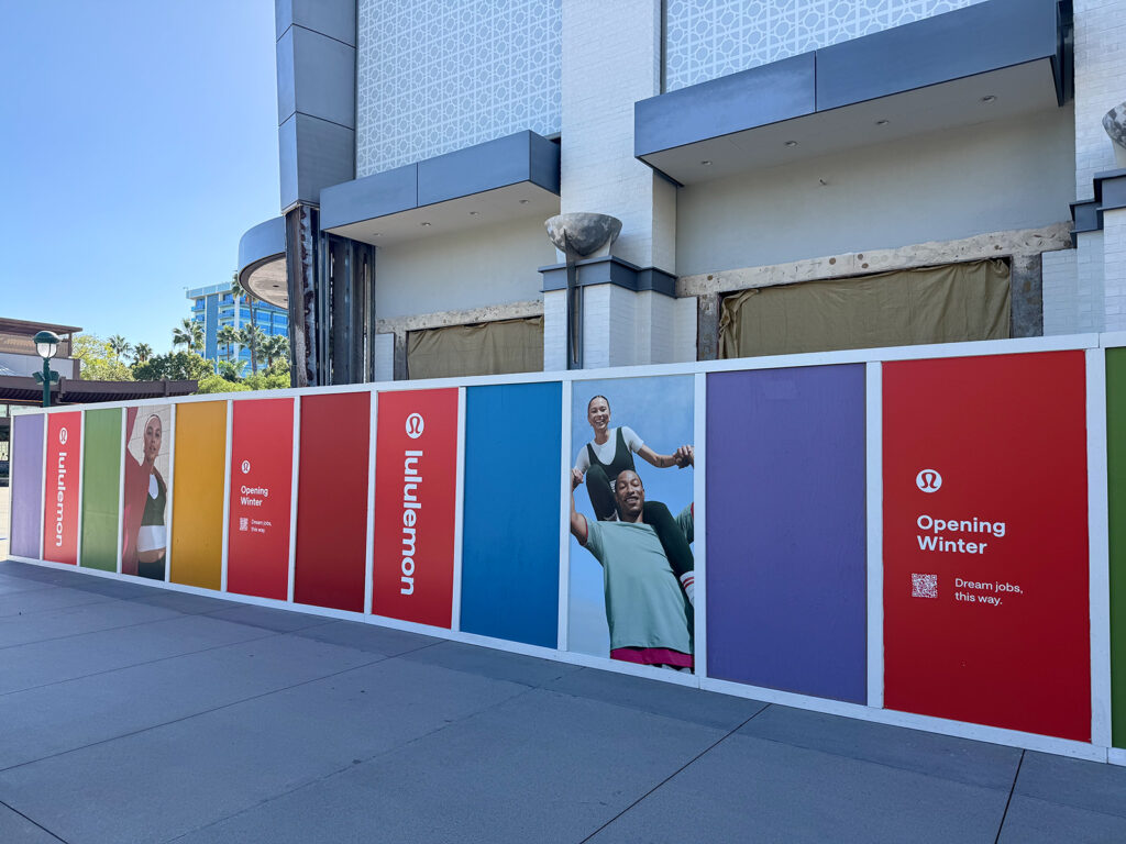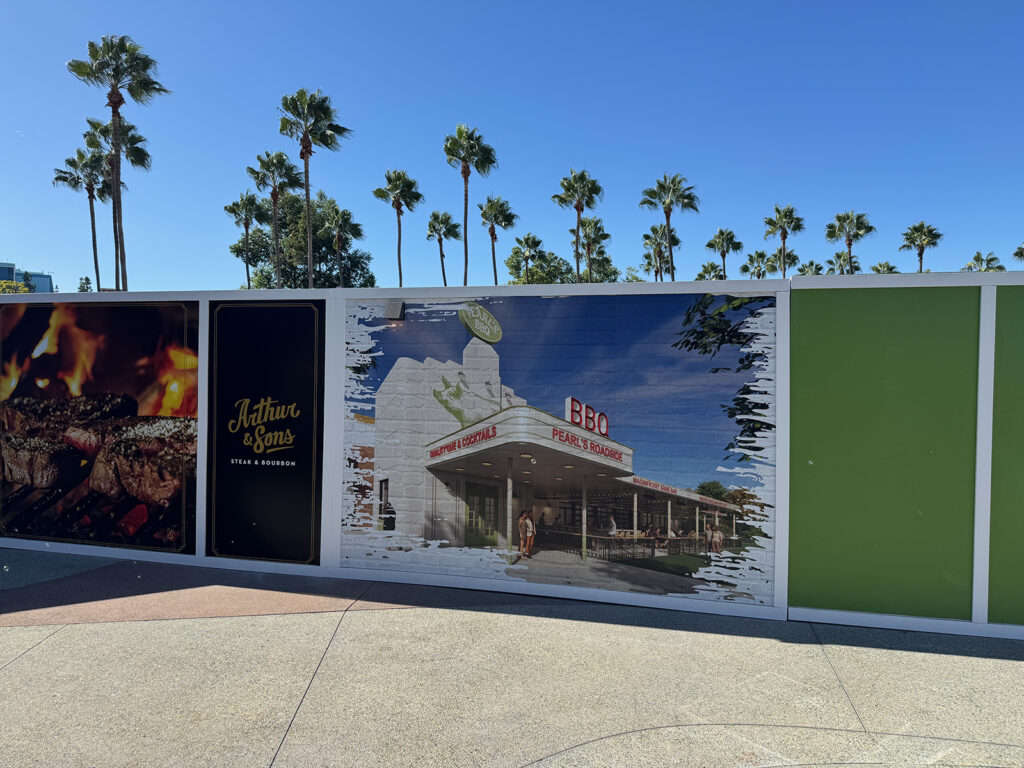 There doesn’t appear to be much happening at the construction site for the two new restaurants in Downtown Disney. A peek behind the colorful walls shows a big cement pad.
