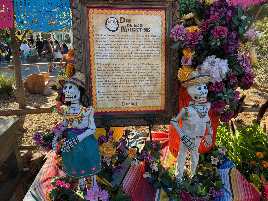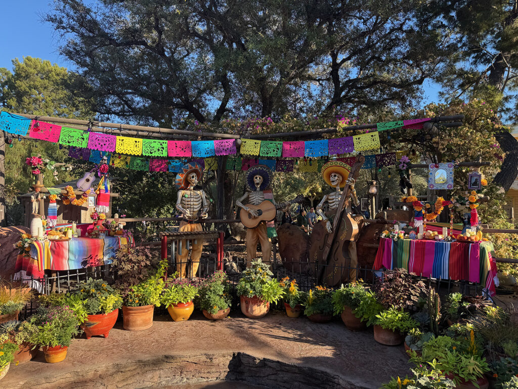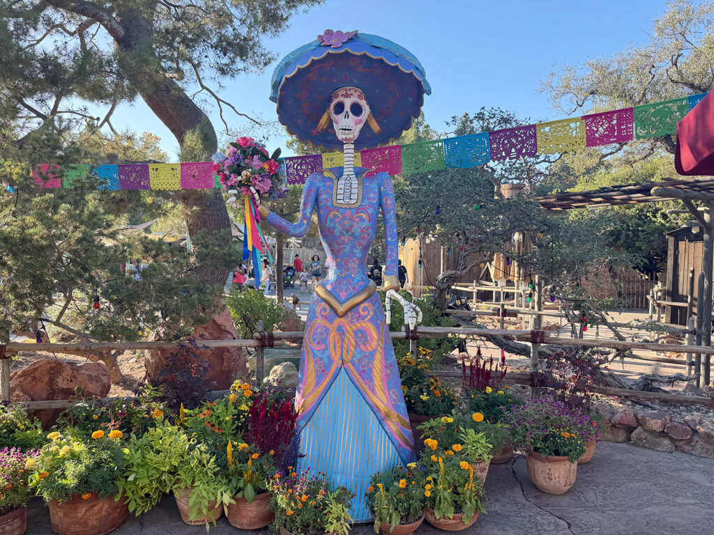 While the Plaza de la Familia at Disney California Adventure may be the bigger draw during Halloween Time, especially with the entertainment and activities centered around the Disney / Pixar film “Coco,” Disneyland also has a tribute to Dia de los Muertos in Frontierland. In fact, the Disneyland display predates the Disney California Adventure one, and adds a colorful touch to the park outside Rancho del Zocalo.