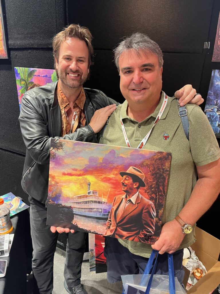 James is warm, generous, and wholly present with fans. He shares his insights, chats about the process, and welcomes conversation. I’ve come to regard him not just as an artist I admire, but as a friend I cherish seeing each year. James’s booth is always alive with color, laughter, and good conversation. I always leave his space smiling, inspired, and just a little more optimistic about the creative spirit that Walt started all those years ago.